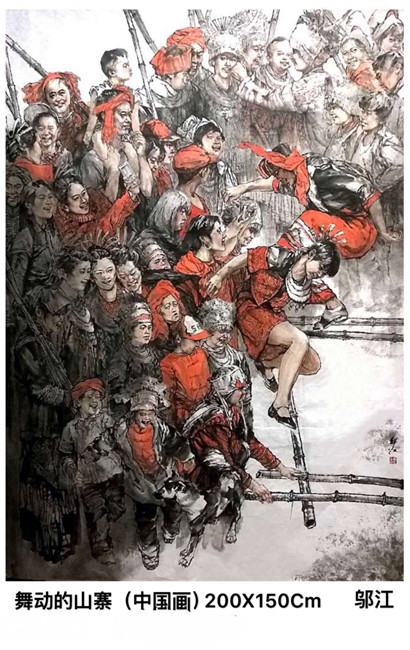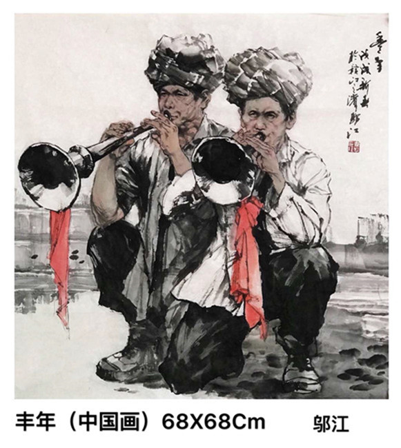 邬江国画作品邀请展(三丶现代题材类) 【 邬江艺术简介】 邬江,1958年8月生于江西赣州,毕业于郑州大学。现为中国美术家协会会员、国家一级美术师、中国画家协会理事丶中国民族文化艺术研究院副院长、北京水墨之韵画院特邀签约画家、三亚学院国艺研究院客座教授。 曾在《美术》、《解放军美术书法》、《解放军艺术学院学报》、《解放军画报》、《解放军报》、《中国书画报》、《中国美术报》、《美术报》、《报告文学》、《中国青年》、《中国妇女》、《中国投资证券》等国家级报刊发表作品400余幅。 出版有《邬江书画集》(中国工商出版社)、《趣画现代人格》(中国文联出版社)、巜鸿爪集》(广东人民出版社)、《21世纪有影响力画家个案研究―邬江卷》(吉林美术出版社)、《大画家-邬江》(天津人民美术出版社)、《印记.邬江中国画作品集》(天津人民美术出版社)。 被录入巜中国现代美术家辞典》、巜中国当代美术家名人录》丶巜中华人物大辞典》、《中国书画名家辞典.》等辞书。 重要作品收藏:解放军81美术馆、中国国家画院、北京荣宝斋、俄罗斯圣比得堡博物馆、澳大利亚多伦多大学、北京钓鱼台国宾馆、中央电视台、四川美术馆、江西美术馆、鲁迅美术学院、苏州美术馆、嘉兴美术馆、吉安美术馆、湖北省利川市政府。 中国美術家协会中国画艺委會、广东省美术家協會主办"印记.鄔江中国画作品展"2019年9月起相继在北京81美术馆、赣州美术馆、遵义美术馆、吉安美术馆、东莞香市画院美术馆举行。 1994年一在新加坡举办个人百幅书画作品展。 1997年一《丰收锣鼓》入选《今日中国美术.资料卷》(中央美术学院、北京大学、首都师范大学编著)。 2013年一《喜看稻菽千重浪》”启航中国梦“名家书画全国巡回展二等奖(首展全国政协礼堂)。 2013年―“墨韵华彩”刘大为师生作品展(北京)。 2014年—中国国家画院高研班作品展(北京)。 2014年一《客家妹系列》(5幅)中法建交50周年“中法书画名家作品展(北京)。 2014年一《捜尽奇峰》中国国家画院美术馆展出并被国家画院收藏(北京)。 2014年一《土家姑娘》俄罗斯圣彼得堡国家艺术博物馆收藏。 2014—《春晖》中央电视台收藏。 2015—《茶姑》钓魚台国宾馆收藏。 2015—《老房东》等10幅作品參加“笔墨的生命“中国国家画院名家师生14人邀请展(北京晋商博物馆)。 2015一《八子参军》(5幅)入选第三届全国架上连环画作品展〈中国美协主办、鲁迅美术学院收藏)。 2015―《烈火金钢》入选”古蜀文脉墨韵天府“全国中国画作品展(中国美协主办、四川美术馆展出并收藏)。2015―《知心话》等7幅作品參加“盛世翰墨“中国画名家临沂邀请展(山东临沂博物馆)。 2016一4《吉祥草原》入选“墨韵古蜀”全国中国画作品展(中国美术家协会主办、四川美术馆展出并收藏)。 2016,5一《正月里》入选”荣宝斋双年展2016“全国中国画展获优秀奖(最高奖)(中国美协主办,中国美术馆展出)。 2016,5一《正月里》北京荣宝斋收藏 2016,6一《风雪长征路》入选“庆祝中国共产党成立95周年“全国美术作品展(中国文联丶中国美协主办,中国国家博物馆展出)。 2016,6-22《风雪长征路》中央电视台"朝闻天下"新闻配图播出。 2016,7一《风雪长征路》入选"红船颂"庆祝建党95周年全国优秀作品巡展(中国美术家协会、浙江省嘉兴美术馆收藏)。 2016,8一《舞动的山寨》入选”美丽中国梦,七彩云南情“全国中国画作品展(中国美协主办、云南美术馆展出)。 2016,8一《一览众山小》入选”吉祥草原,丹青鹿城2016“全国中国画作品展(中国美协主办、包头美术馆展出)。 2016,9一《节日》、《阳光下》纪念中加建交46周年”中国当代著名美术家多伦多国际收藏展“(中国国际书画艺术协会主办,加拿大多伦多大学收藏)。 2016,10一《祝捷》入选”纪念长征胜利80周年全军美术作品展“获优秀奖(最高奖)(中央军委政治工作部、中国美术家协会主办,解放军八一美术馆展出并被收藏)。 2016,10一《永恒的誓言》(5幅)入选全国第四届架上连环画展(中国美术家协会主办、鲁迅美术学院收藏)。 2O16,12一《草原盛会》入选"写意.苏州"(人物篇)全国中国画双年展获优秀奖(最高奖)(中国美术家协会主办、江苏省美术馆展出并收藏)。 2017,1一《祝捷》在《解放军美术书法》杂志2017年第一期发表。 2017,6一《雪山壮歌》入选"中国(南昌)軍事美术作品展"获优秀奖(最高奖)(中国美術家協會主办丶江西省美術館展出并收藏)。2017,7一《我的父辈》入选庆祝建军90周年全国美展暨第十三届全军美术作品展(文化部、中央军委政治工作部、中国美术家协会主办,中国美术馆展出)。 2017,8一《我的父辈》在《美术》杂志2017年第八期发表。 2017,9-《我的父辈》入选"庆祝建军90周年全国美展优秀作品临沂特邀展"(中国美术家协会、山东省临沂市人民政府)。 2017,10-《盛装》、《丽日》、《采茶姑娘》、《阳光灿烂的日子》四幅参加纪念中加建交47周年第二届"中国当代著名美术家多伦多国际收藏展"(中国国际书画艺术协会主办、加拿大多伦多大学收藏)。2017、11《祝捷》在《解放军艺术学院学报》2017年第二期封底发表。 2017、12-受聘三亚学院国艺研究院客座教授。 2018,1-《大画家-邬江》出版,全国新华书店发行(天津人民美术出版社)。 2018、3